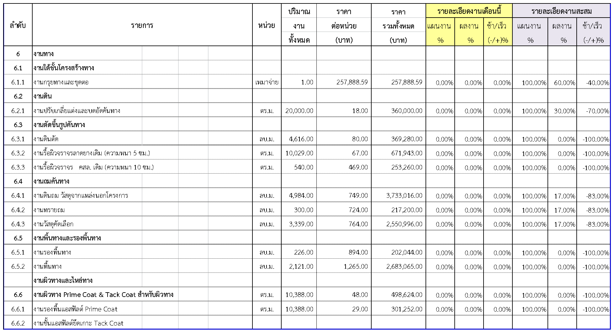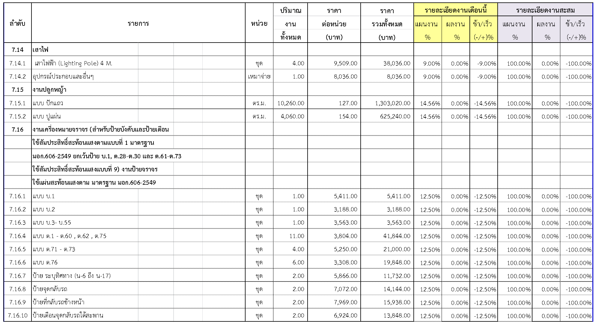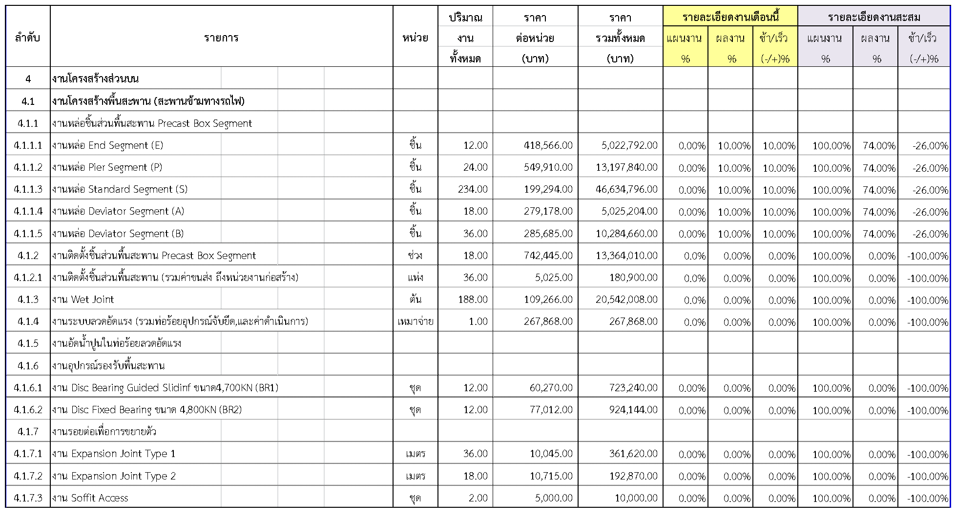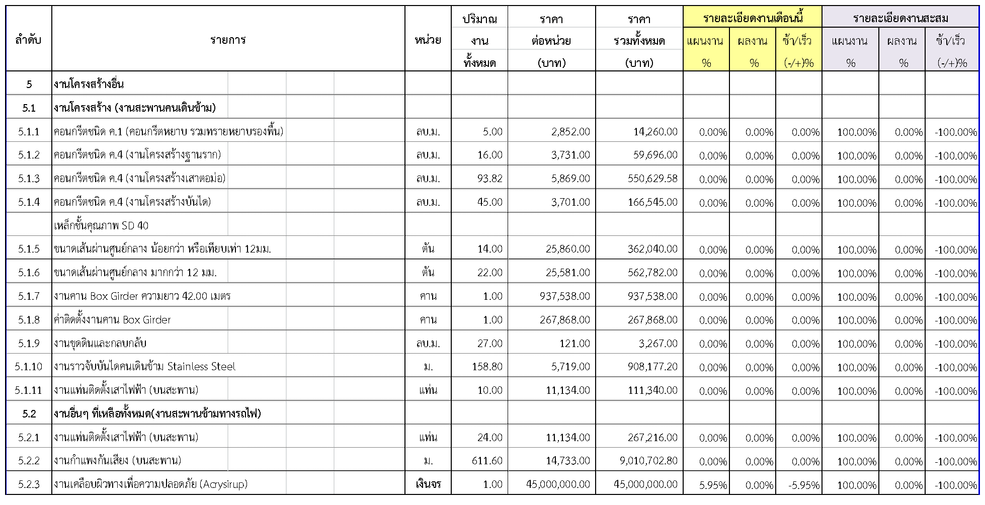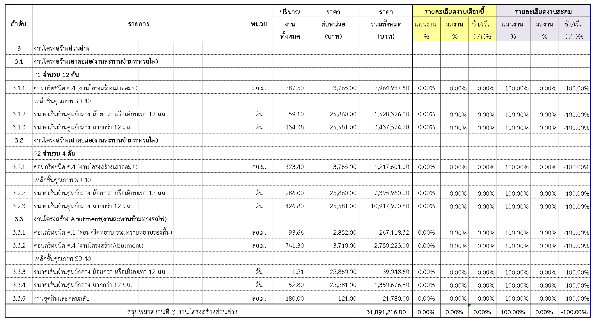 2.2 ความก้าวหน้าของงานก่อสร้างแยกตามรายการ