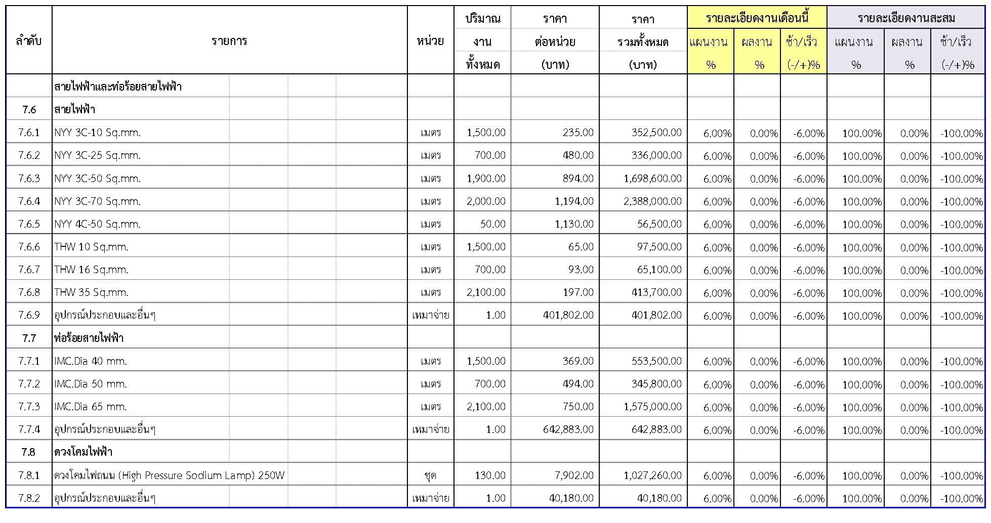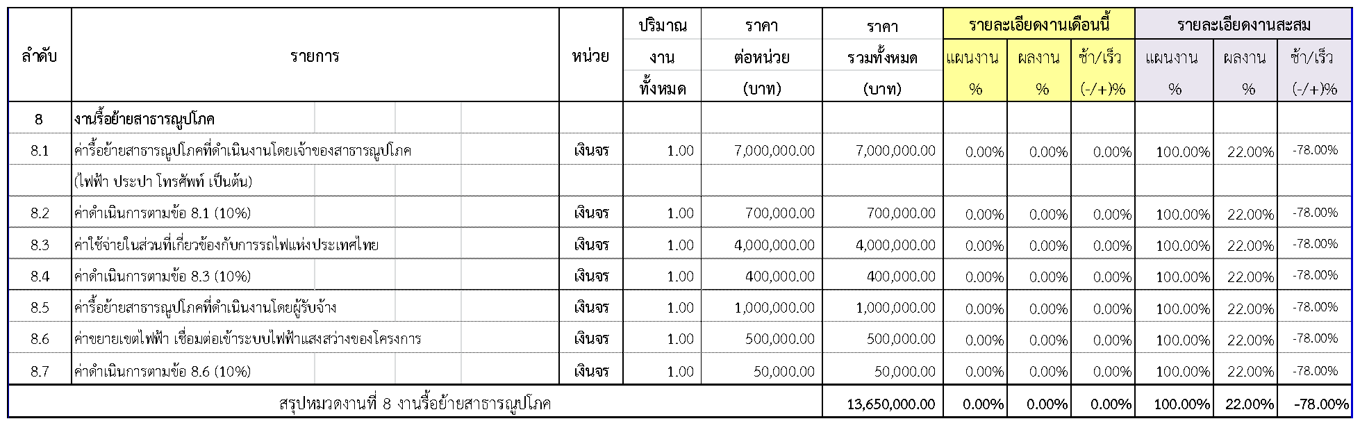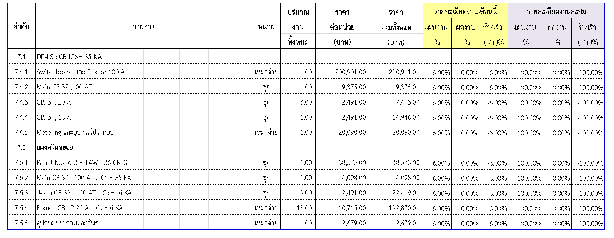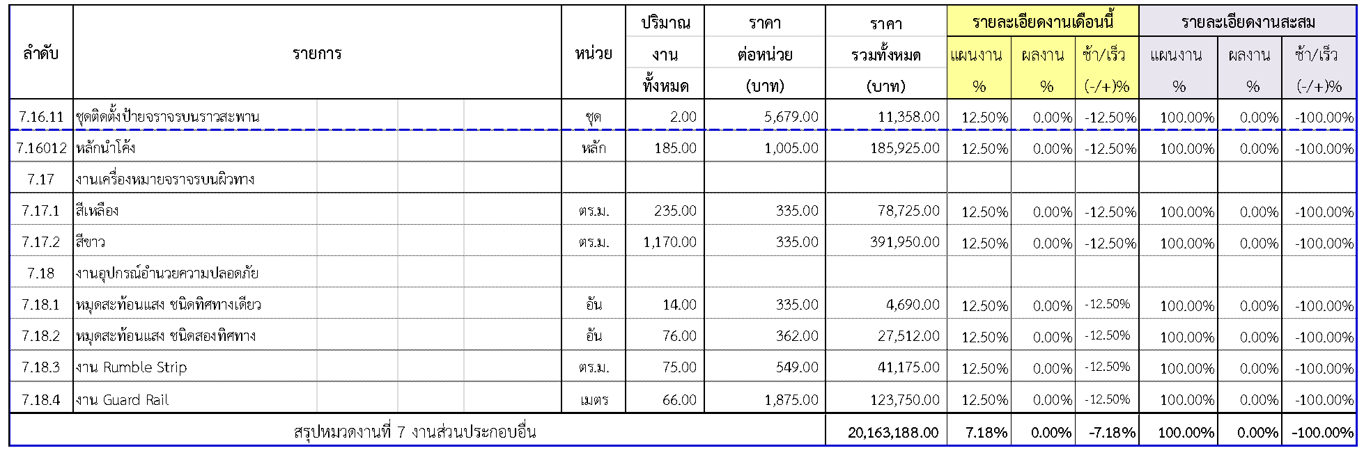 2.2 ความก้าวหน้าของงานก่อสร้างแยกตามรายการ