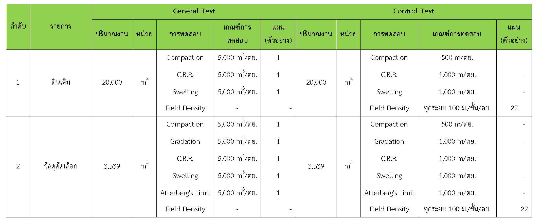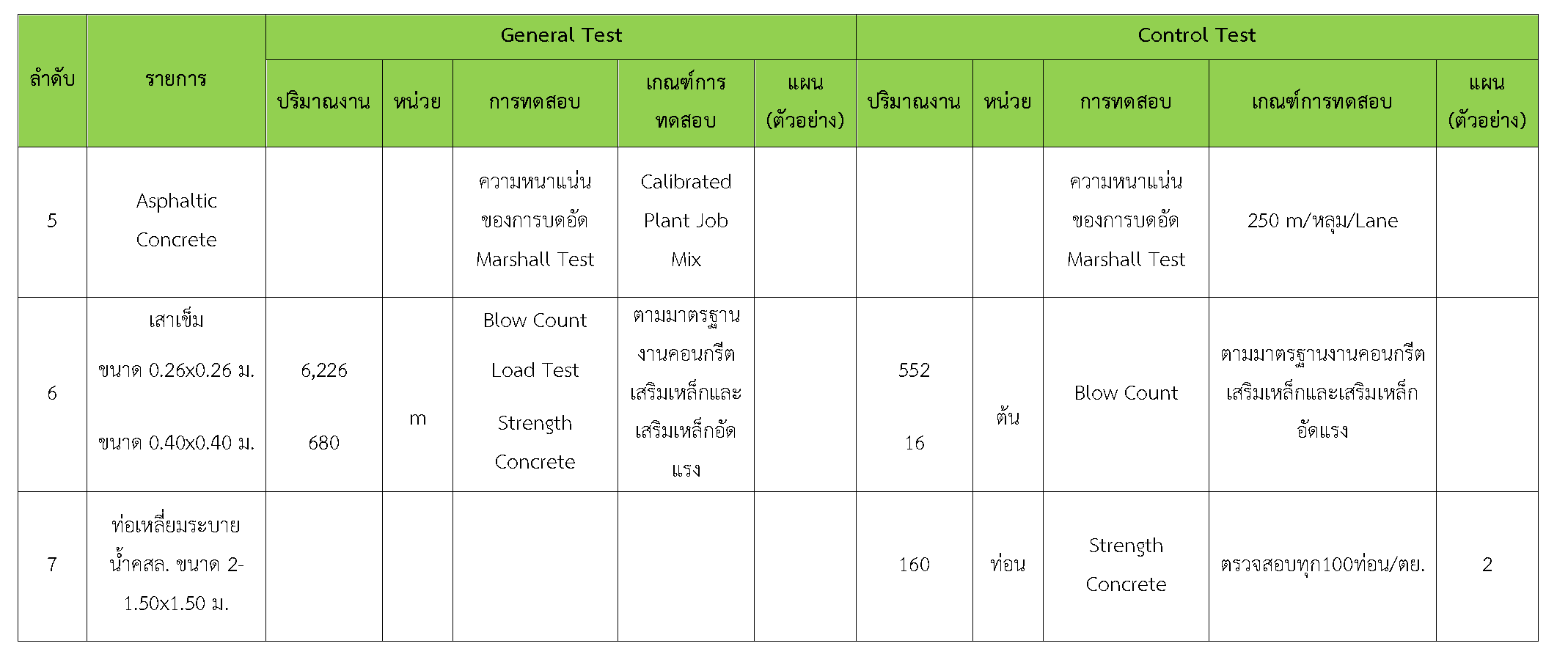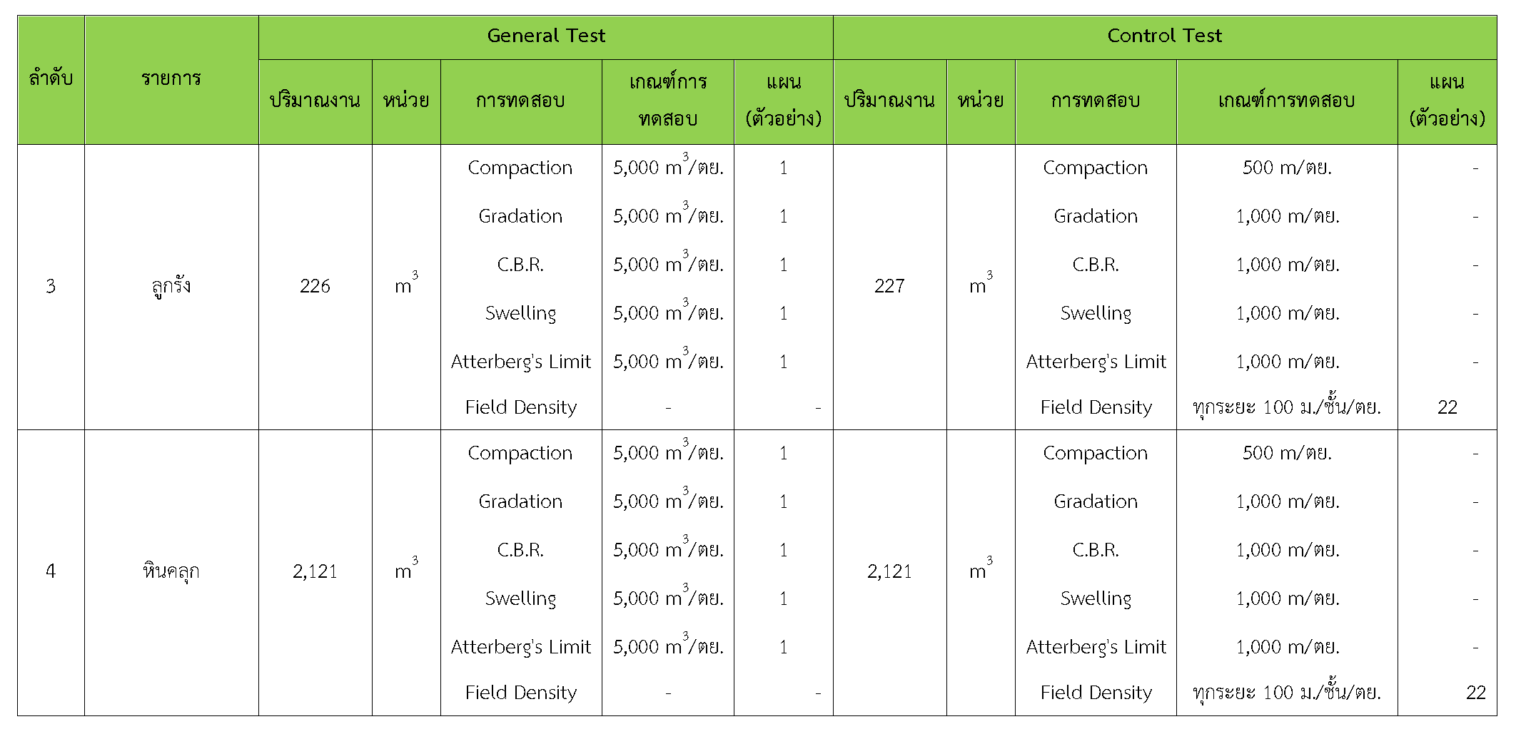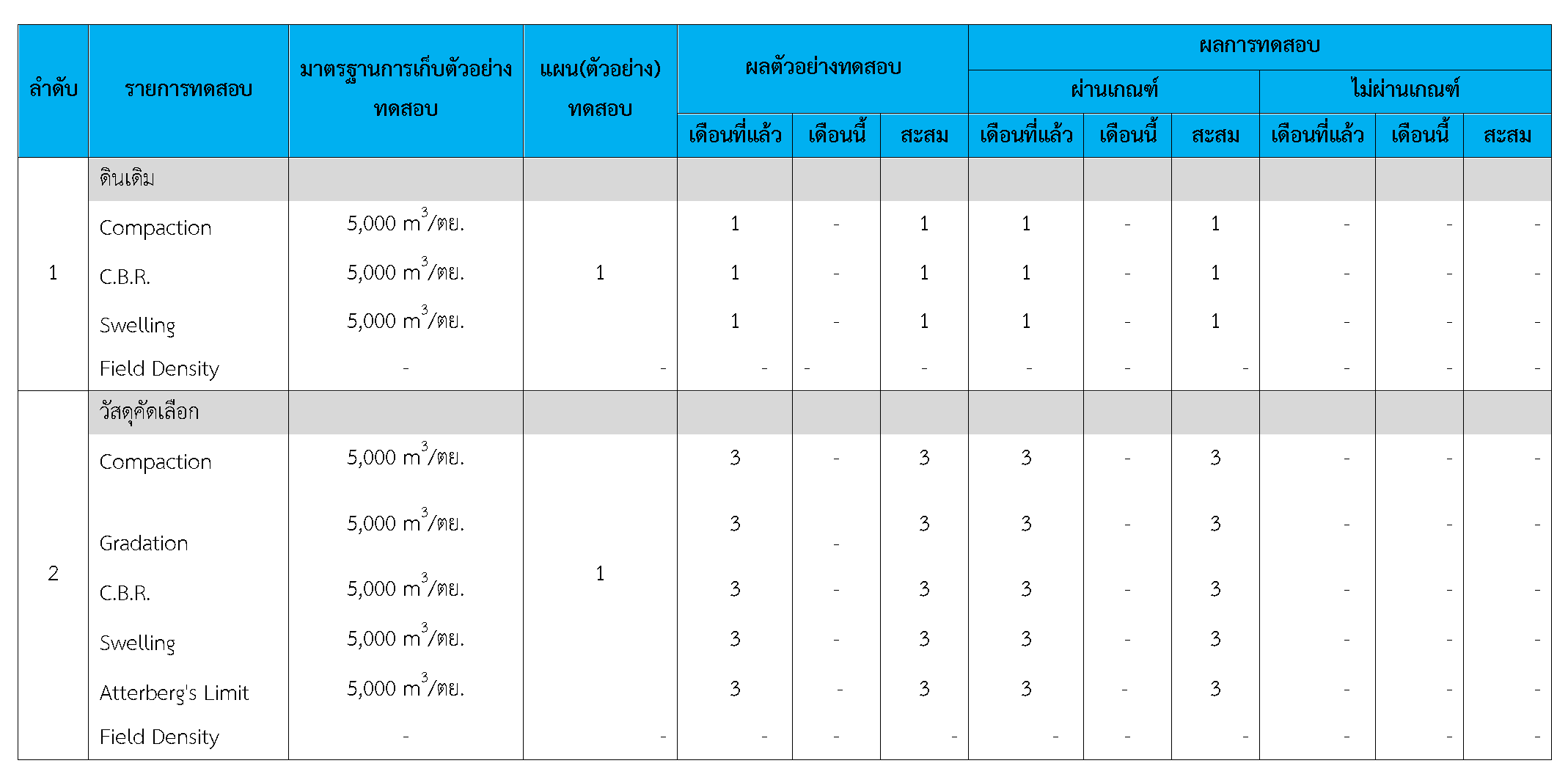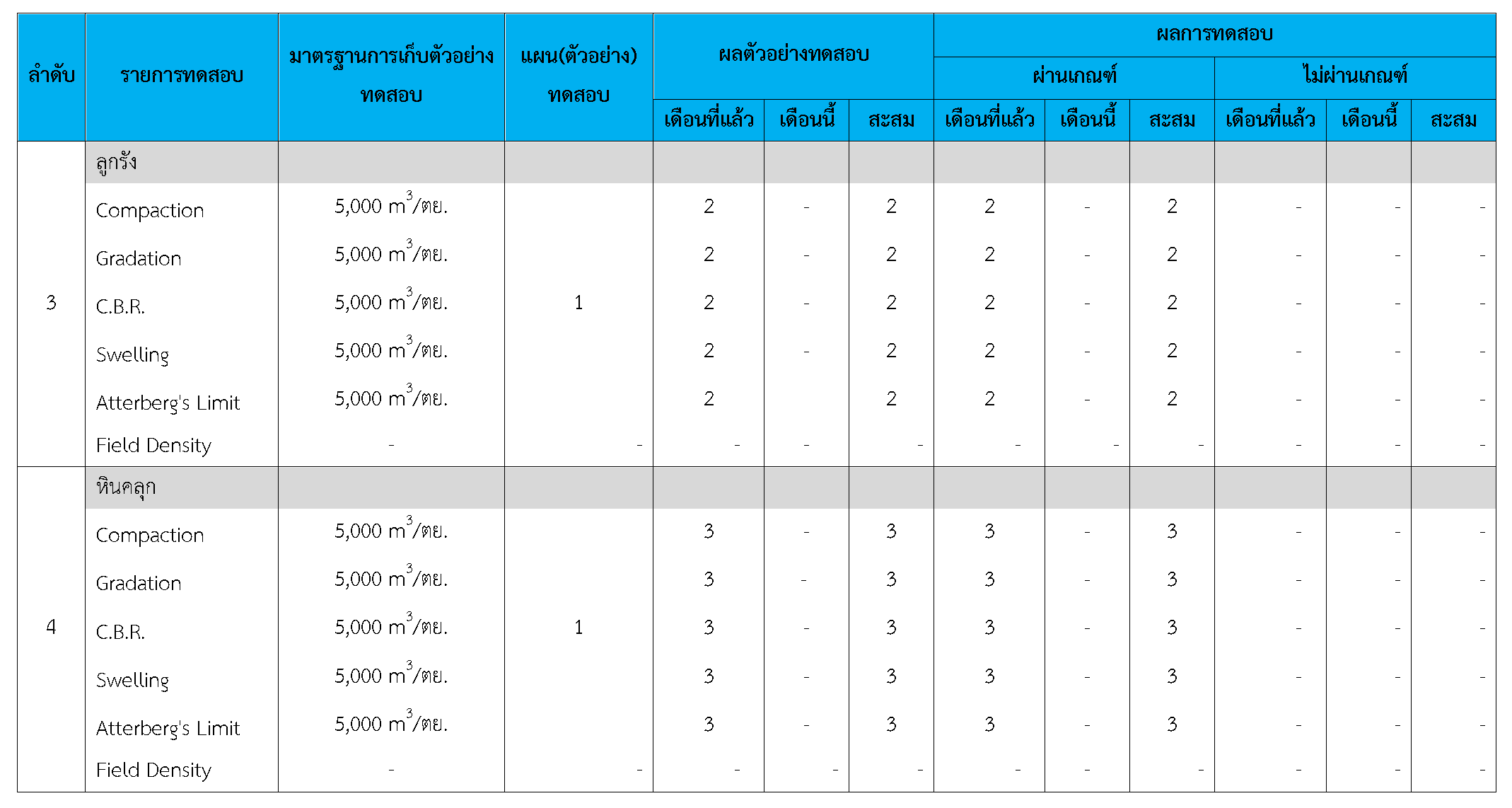 ในระหว่างวันที่ 1-30 มิถุนายน2561ผู้ว่าจ้างได้เสนอหนังสือขออนุมัติใช้วัสดุถึงที่ปรึกษา โดยที่ปรึกษาได้ตรวจสอบวัสดุดังกล่าวมีผลทดสอบดังตาราง