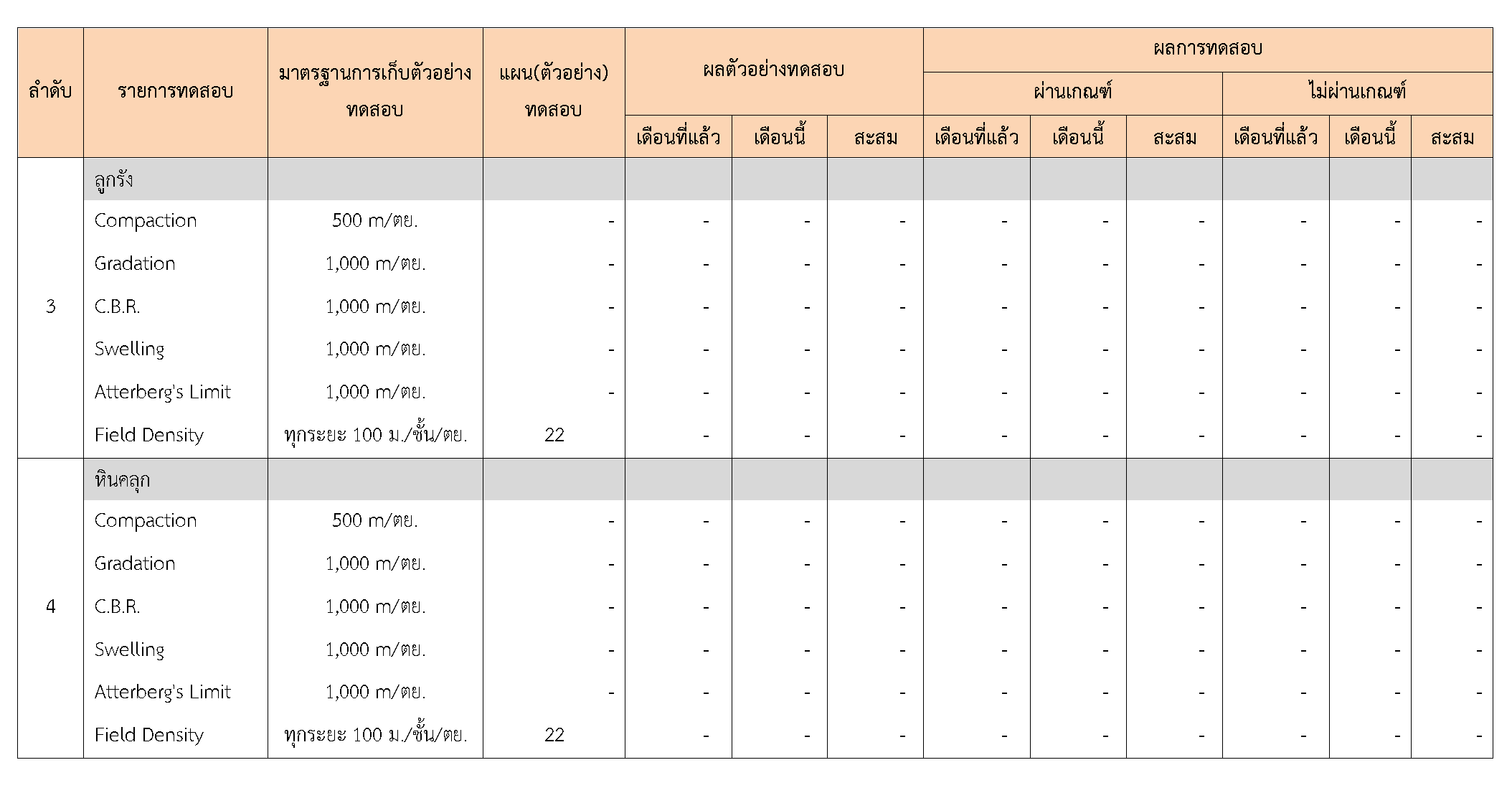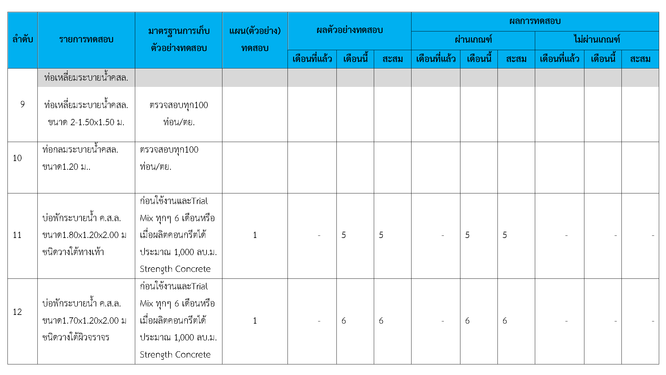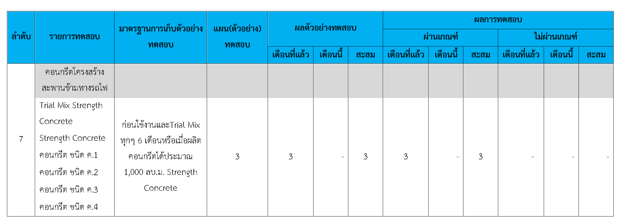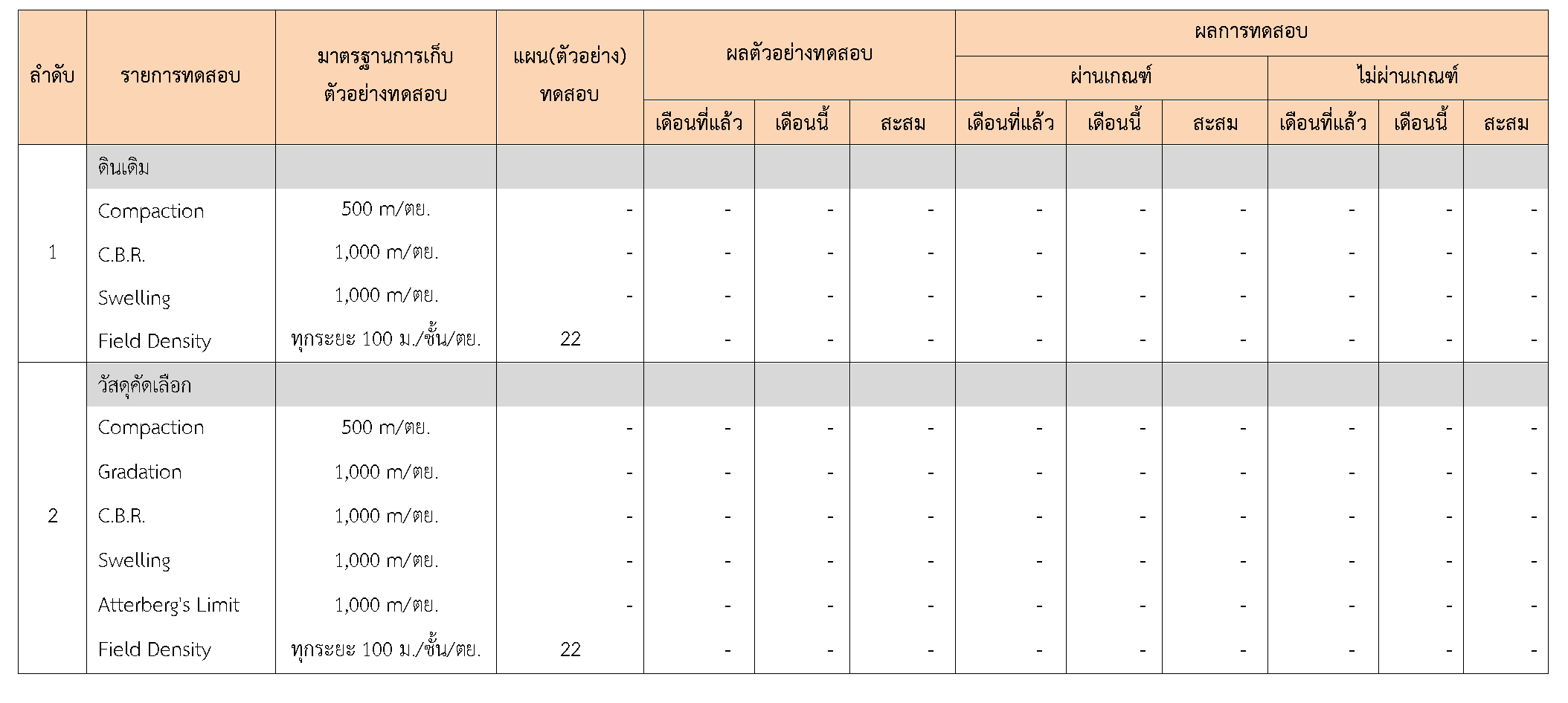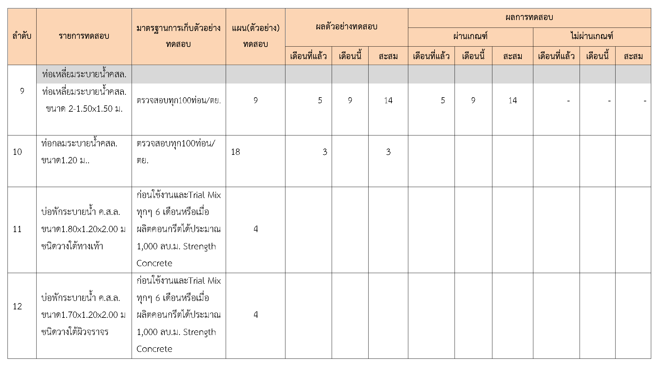 ในระหว่างวันที่ 1-30 มิถุนายน2561ผู้ว่าจ้างได้เสนอหนังสือขออนุมัติใช้วัสดุถึงที่ปรึกษา โดยที่ปรึกษาได้ตรวจสอบวัสดุดังกล่าวมีผลทดสอบดังตาราง