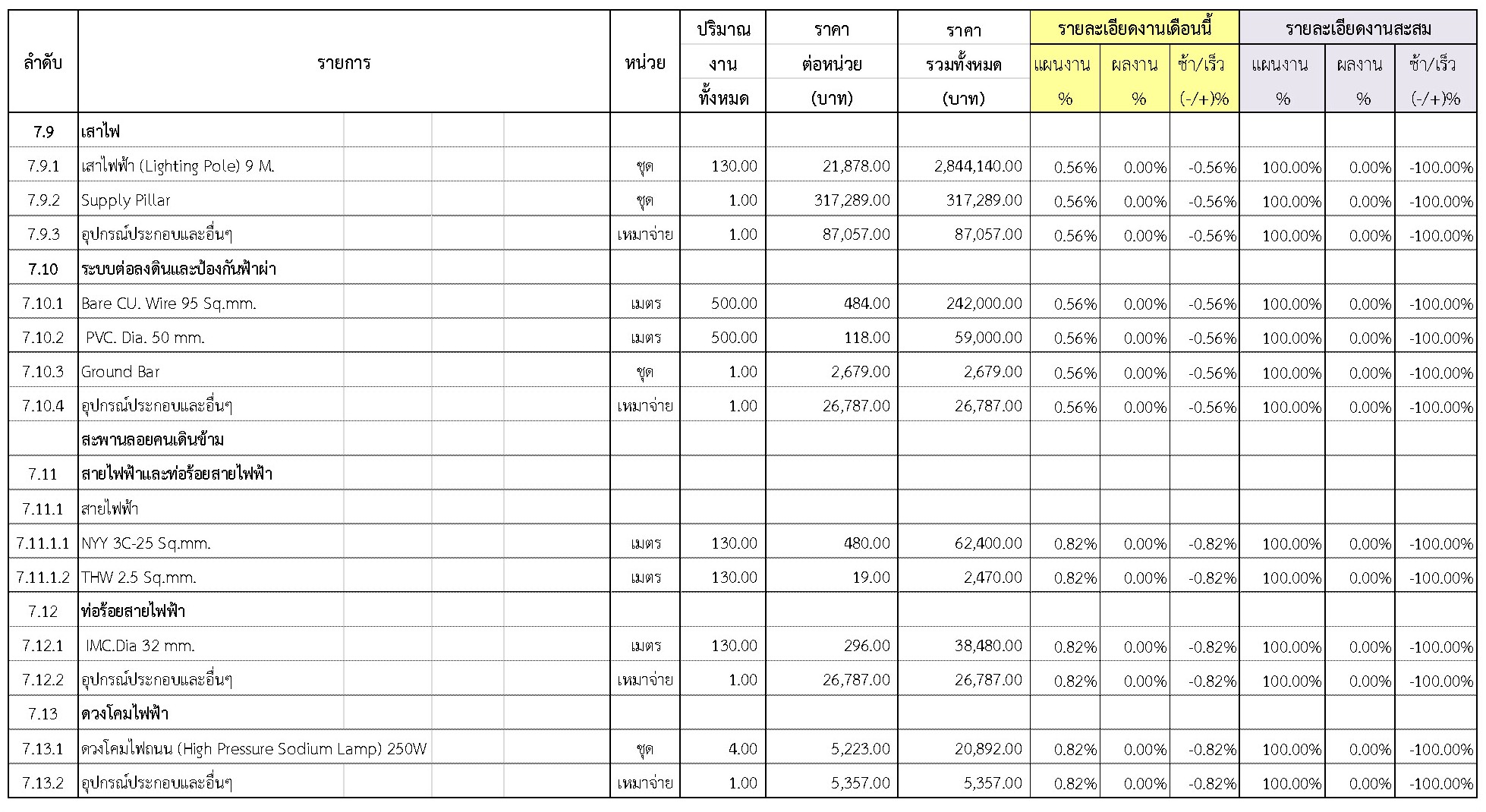 2.2 ความก้าวหน้าของงานก่อสร้างแยกตามรายการ
