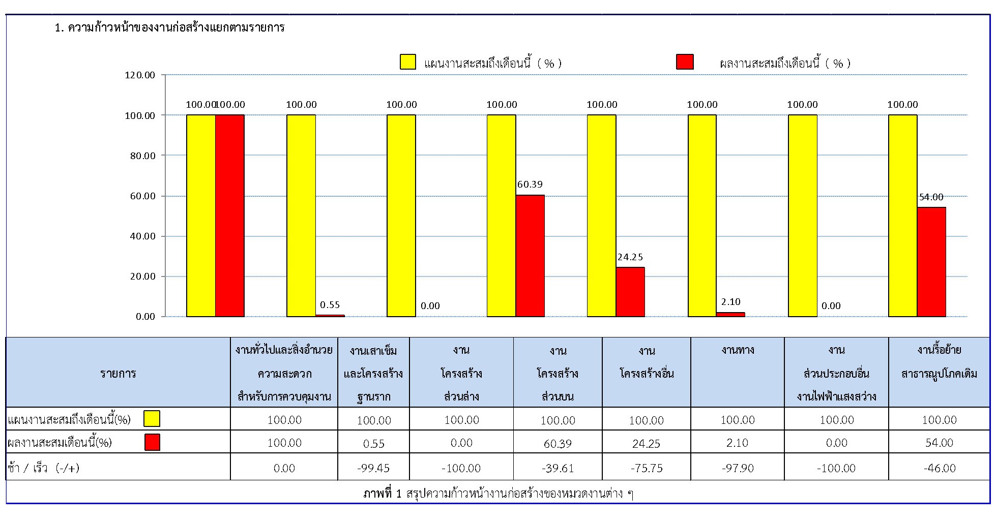 ตารางที่ 2.1-1 สรุปผลงานความก้าวหน้าของงานก่อสร้าง