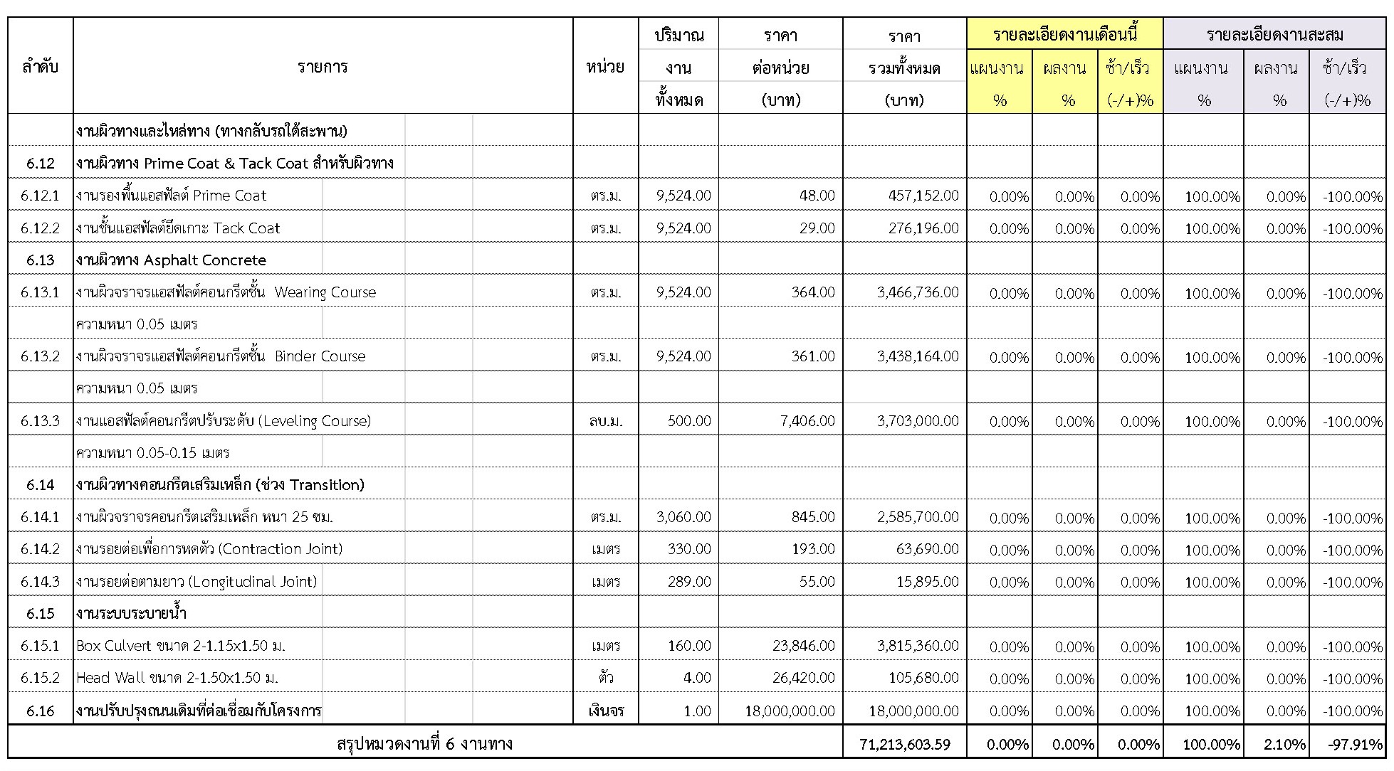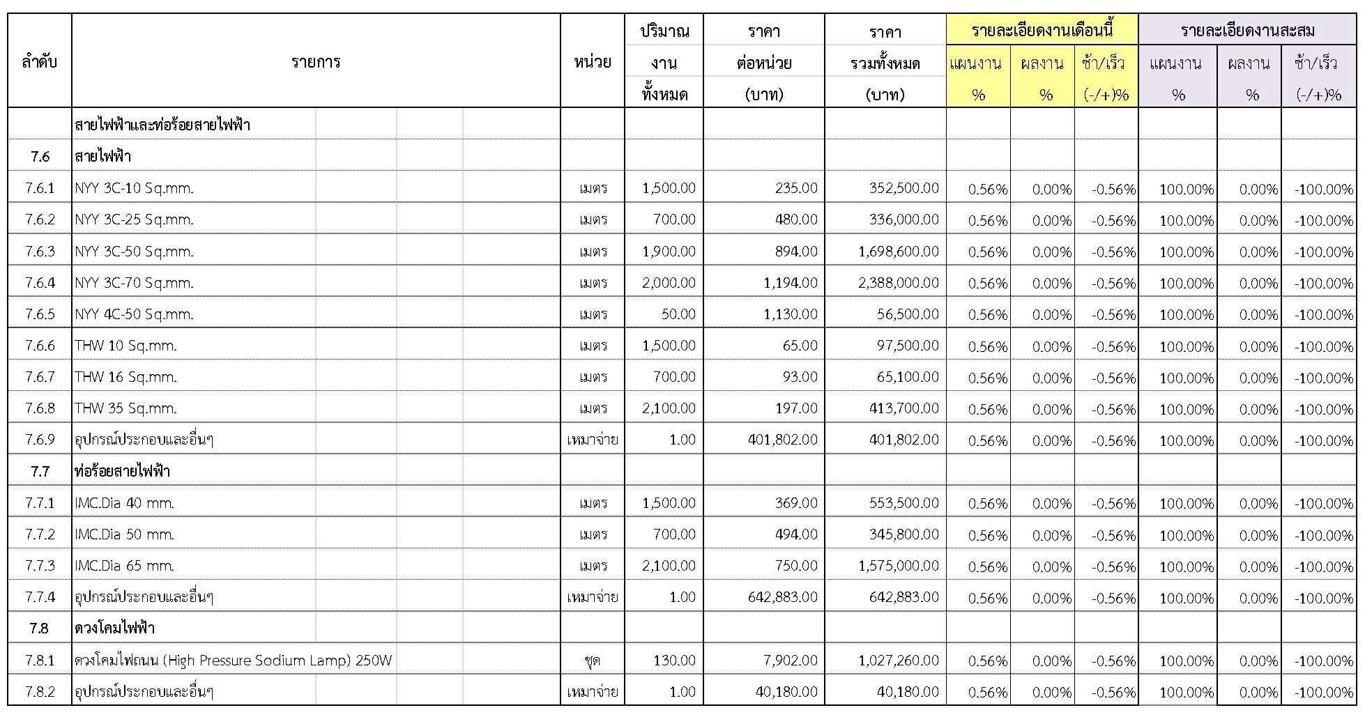 2.2 ความก้าวหน้าของงานก่อสร้างแยกตามรายการ