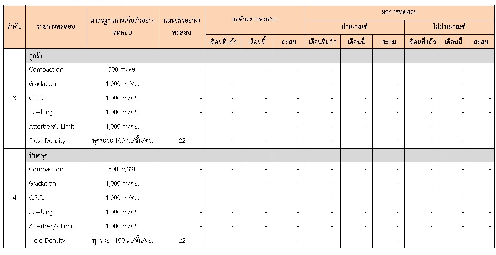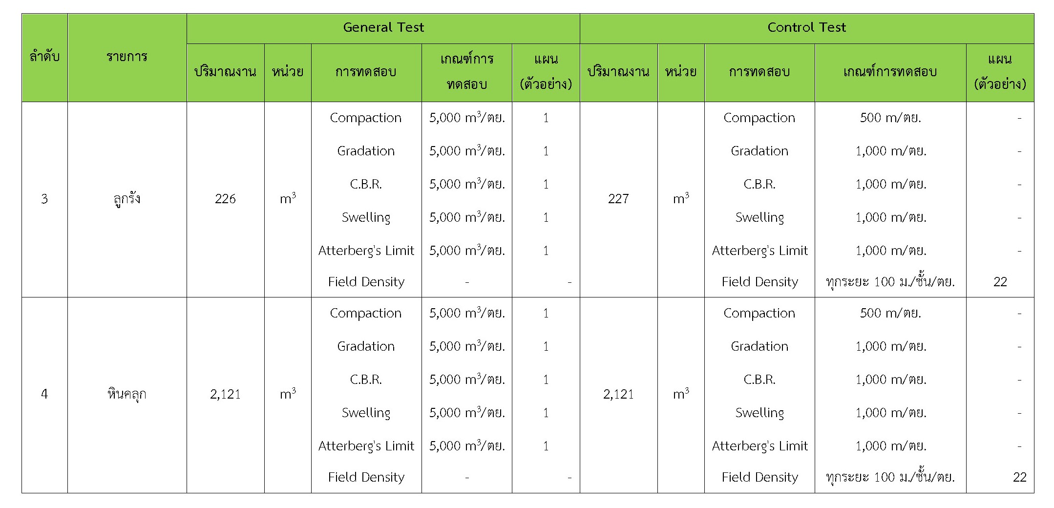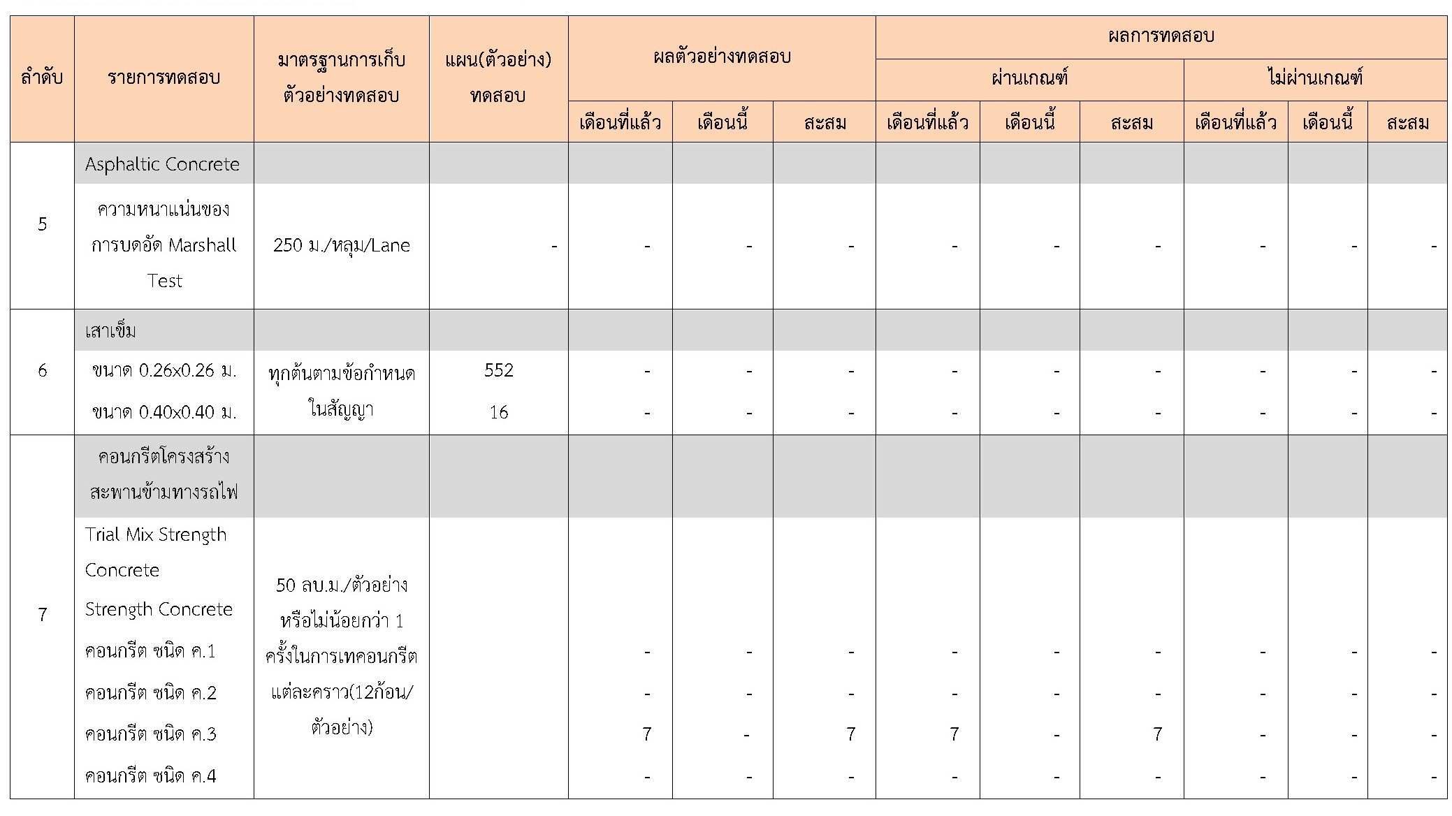 ในระหว่างวันที่ 1-30 กันยายน 2561ผู้ว่าจ้างได้เสนอหนังสือขออนุมัติใช้วัสดุถึงที่ปรึกษา โดยที่ปรึกษาได้ตรวจสอบวัสดุดังกล่าวมีผลทดสอบดังตาราง