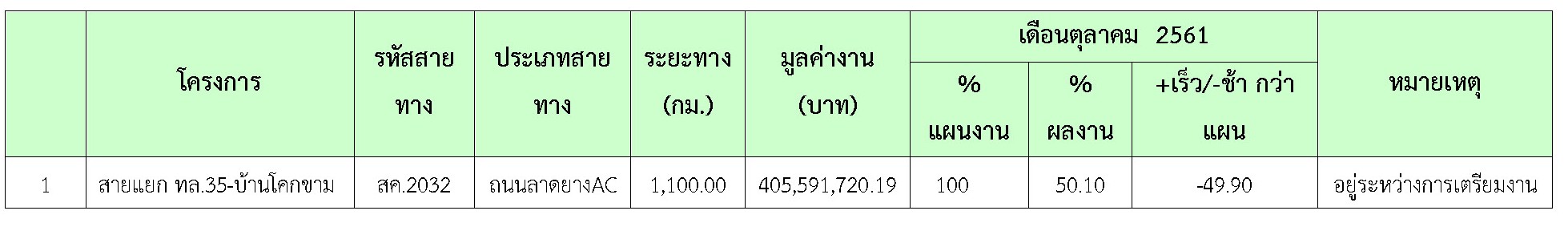 ความก้าวหน้าของเดือน ตุลาคม 2561ของการปฏิบัติงาน ( 50.10 %) แยกเป็น ดังต่อไปนี้