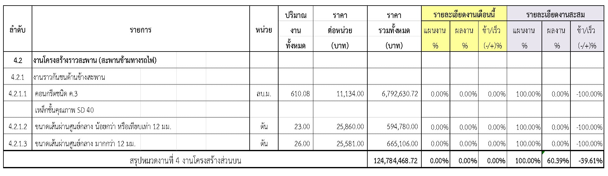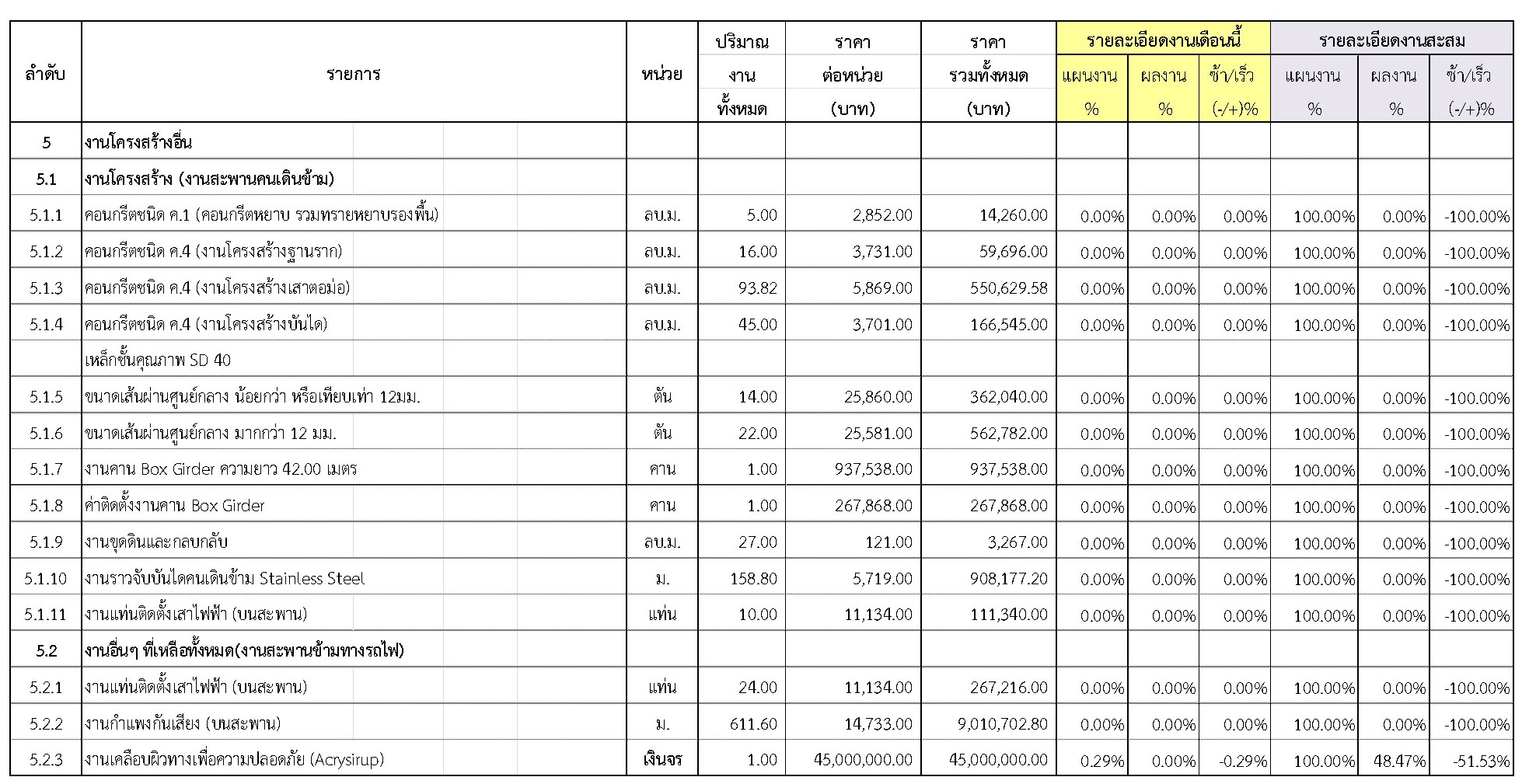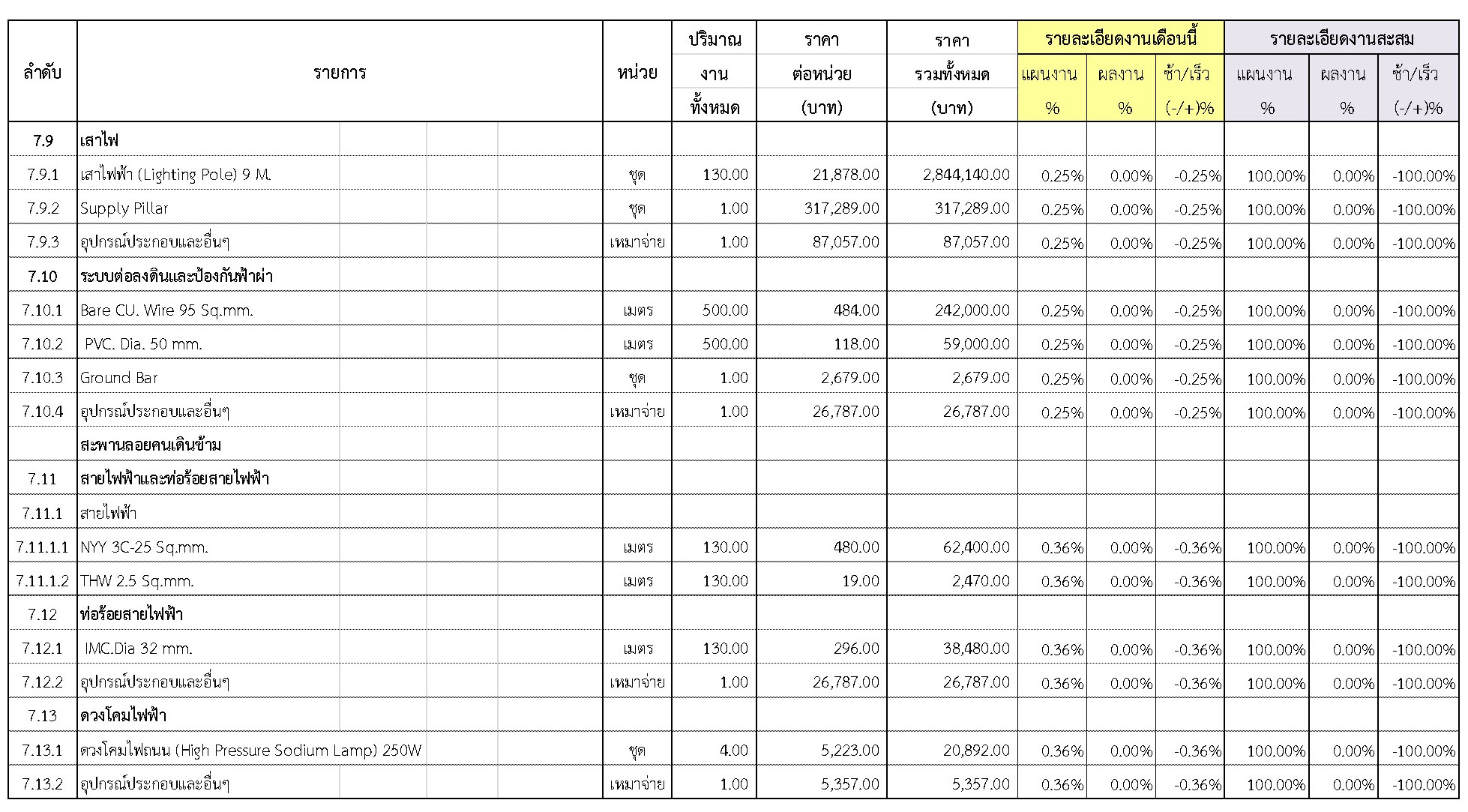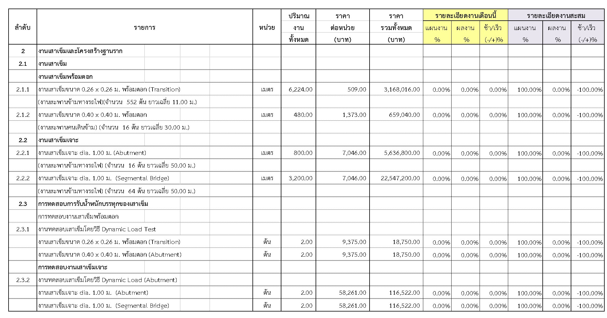 2.2 ความก้าวหน้าของงานก่อสร้างแยกตามรายการ