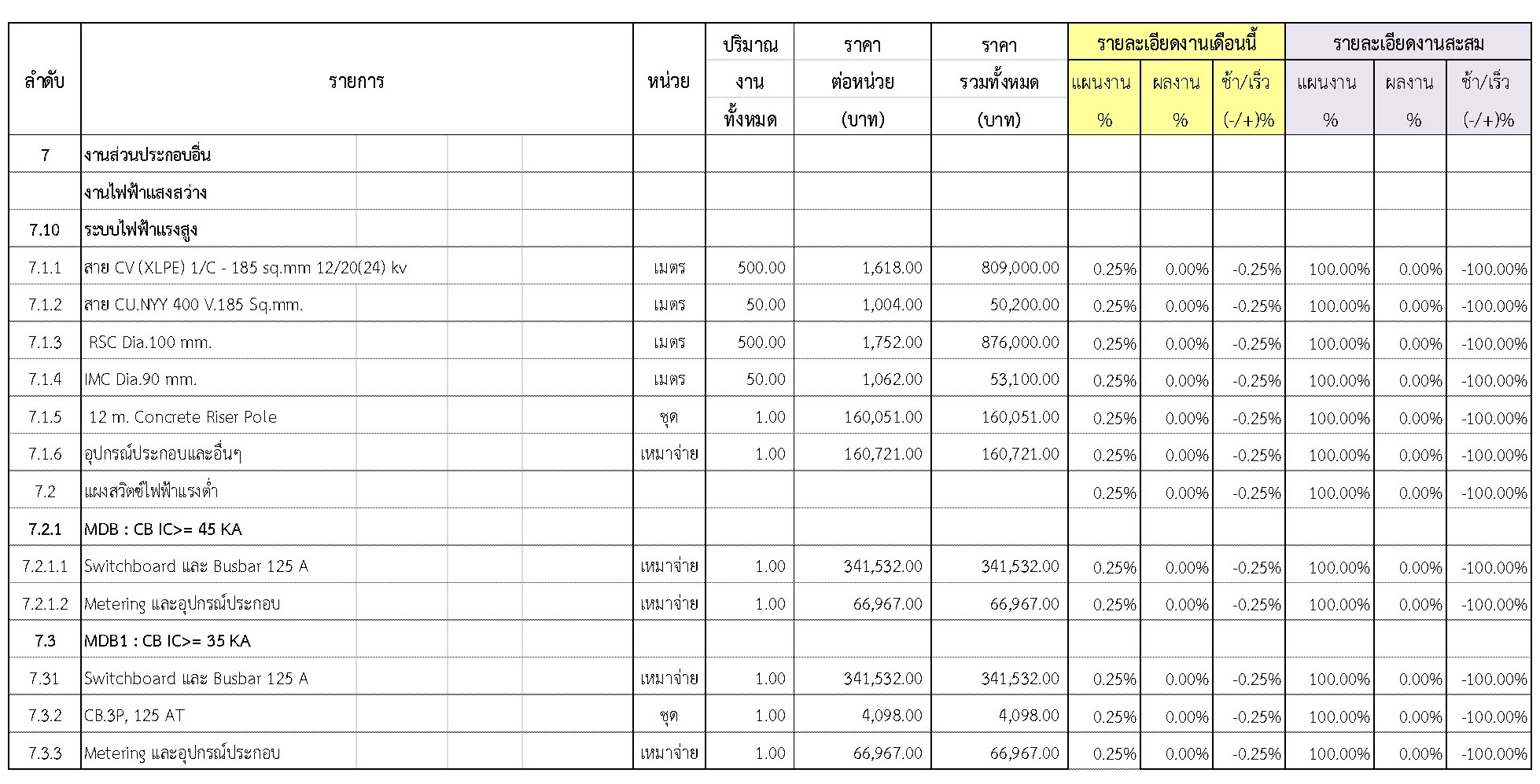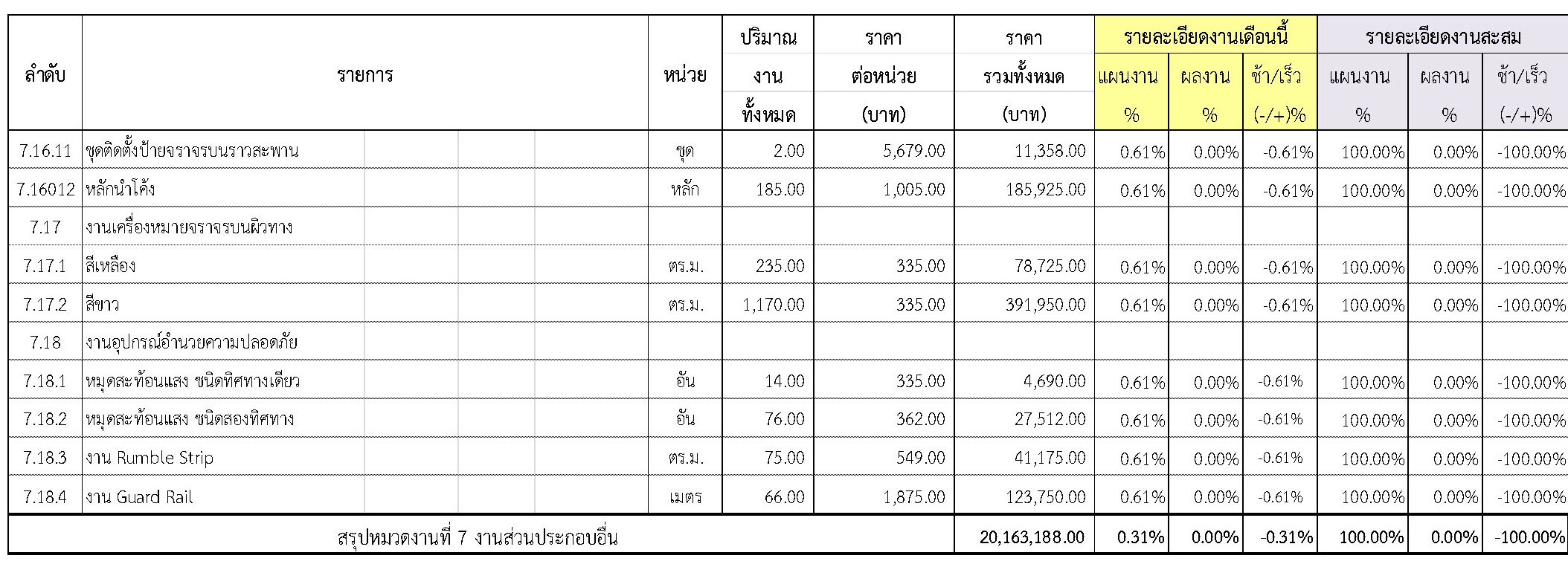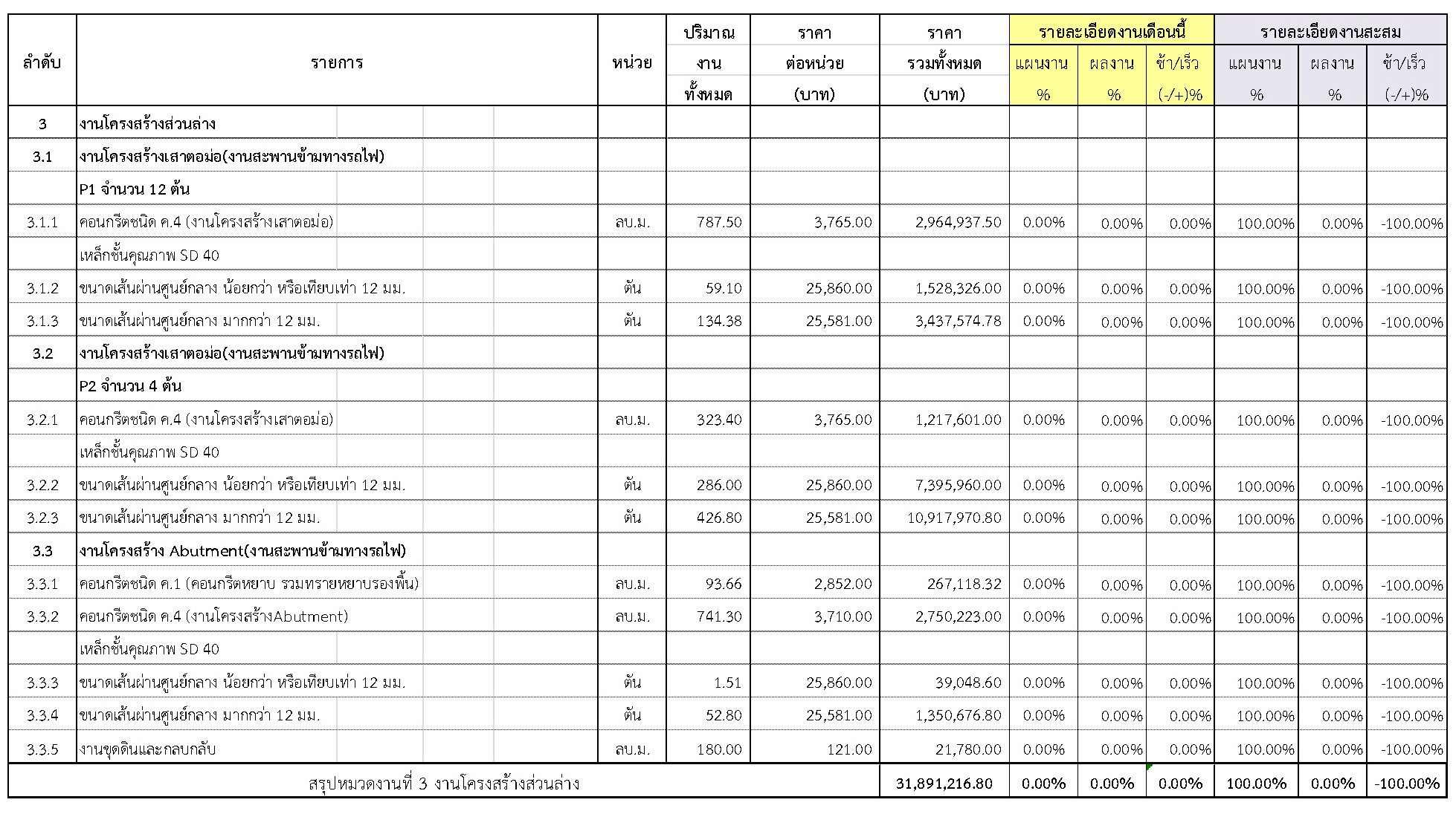 2.2 ความก้าวหน้าของงานก่อสร้างแยกตามรายการ