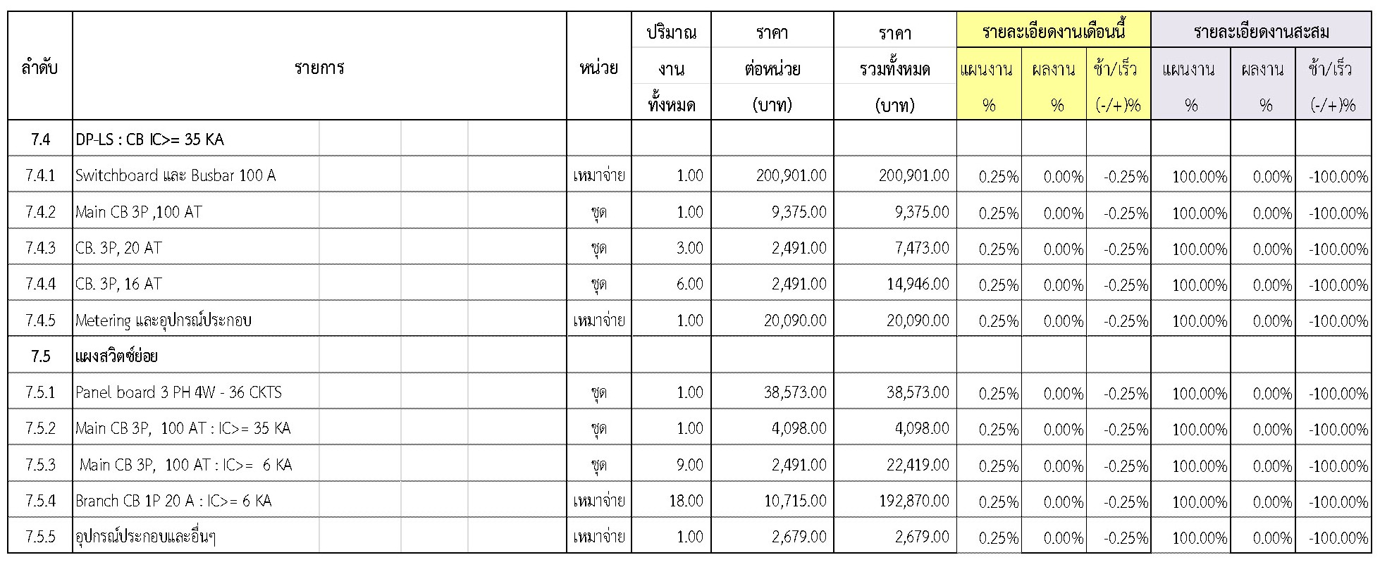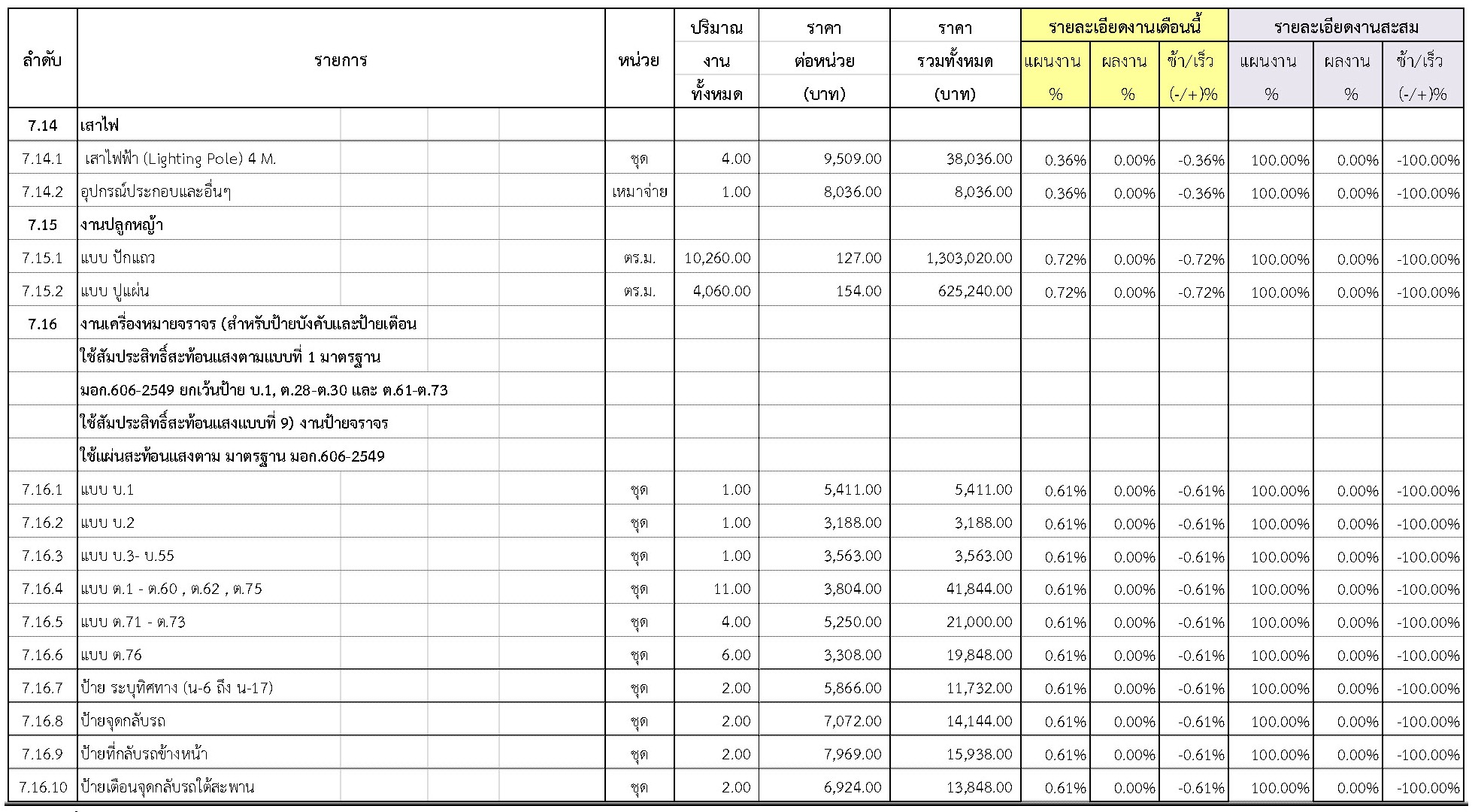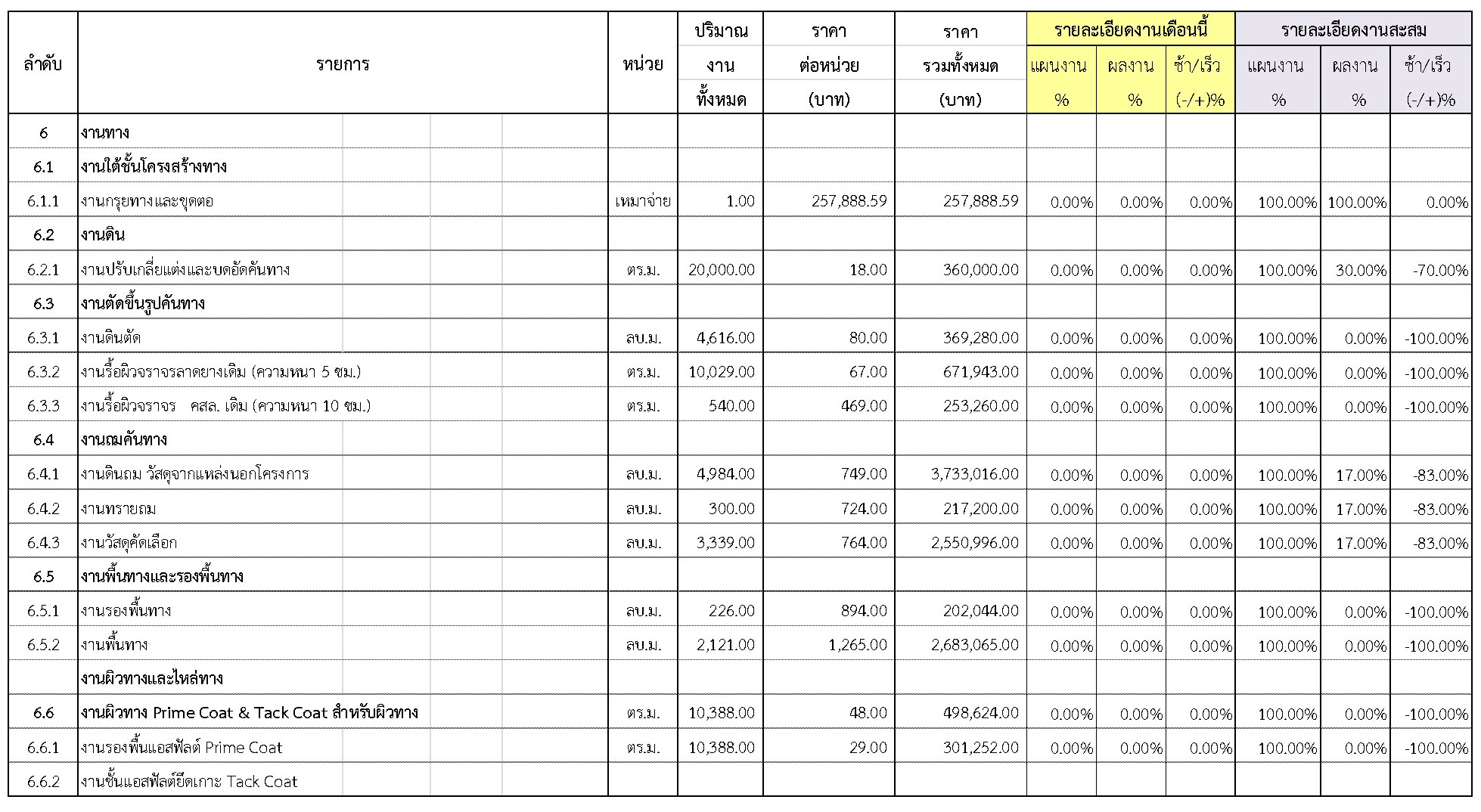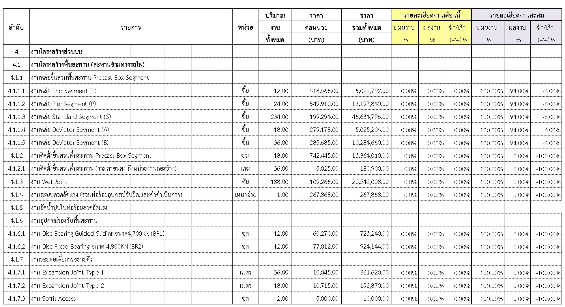 2.2 ความก้าวหน้าของงานก่อสร้างแยกตามรายการ