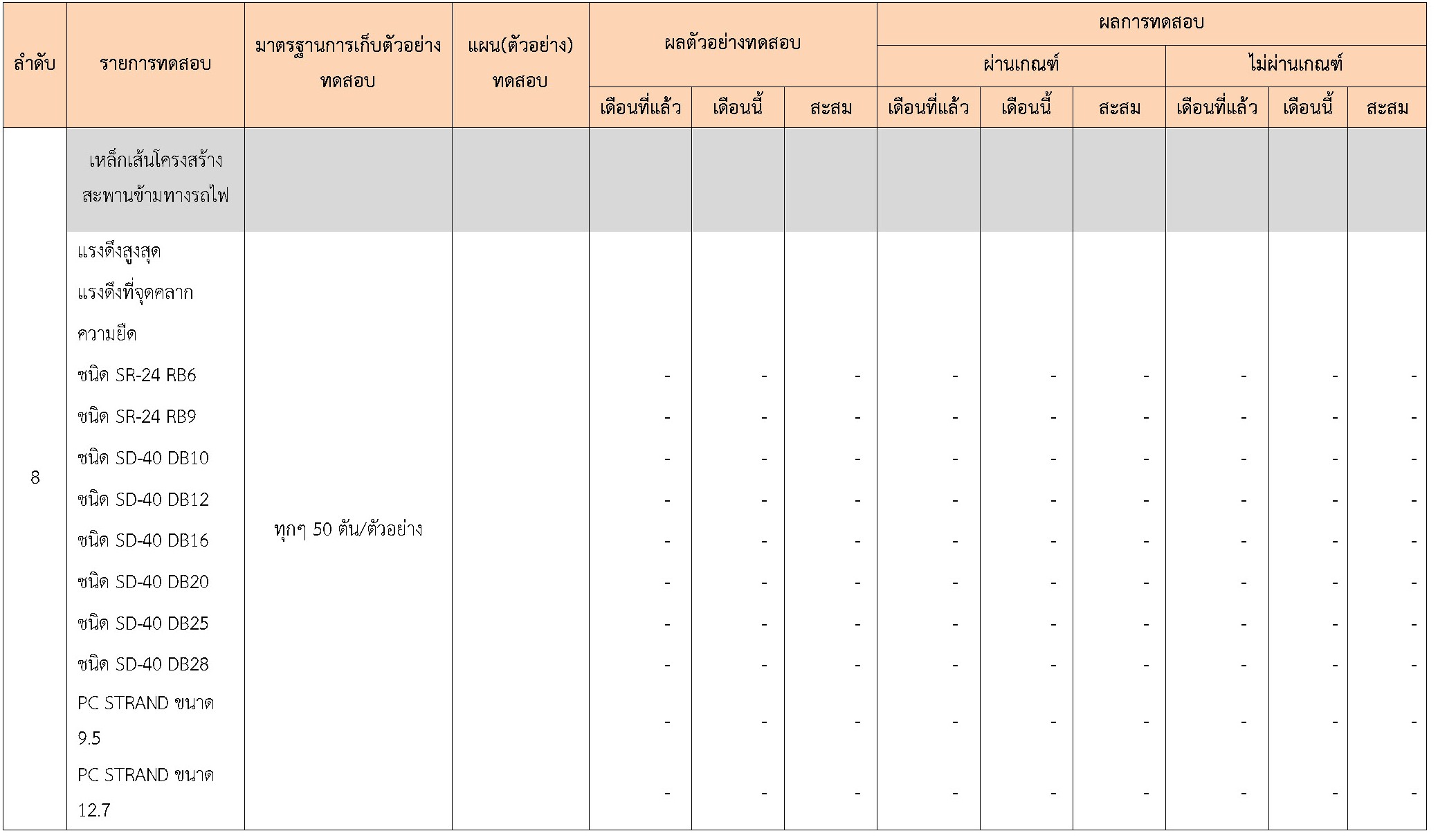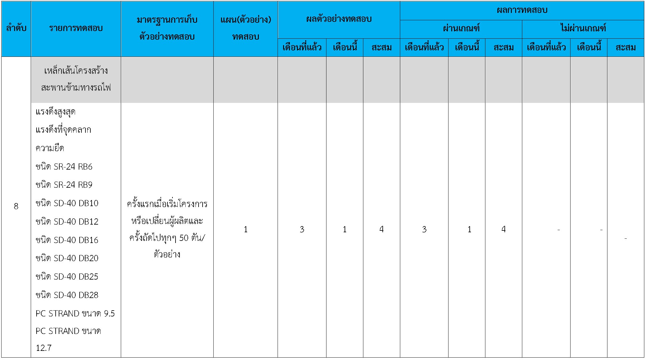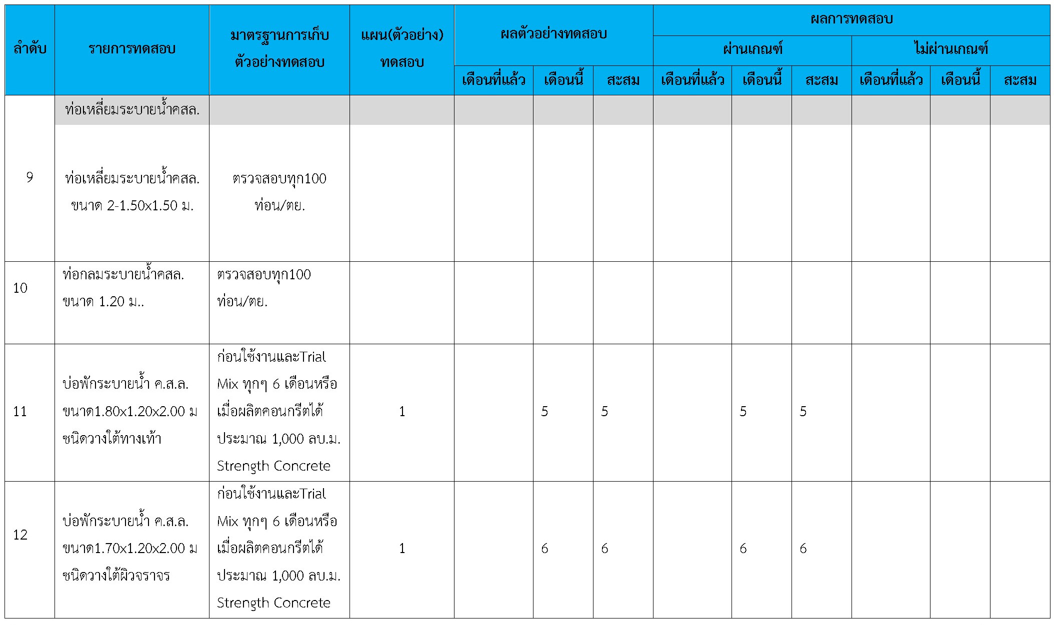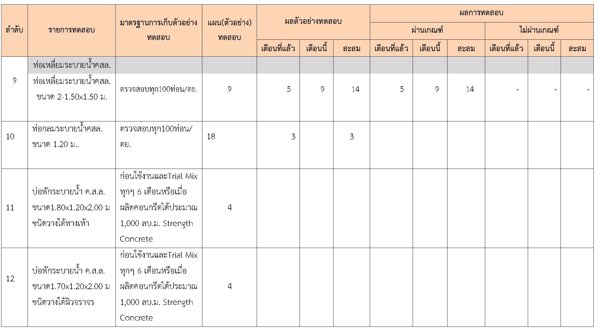 ในระหว่างวันที่ 1-30ตุลาคม 2561ผู้ว่าจ้างได้เสนอหนังสือขออนุมัติใช้วัสดุถึงที่ปรึกษา โดยที่ปรึกษาได้ตรวจสอบวัสดุดังกล่าวมีผลทดสอบดังตาราง