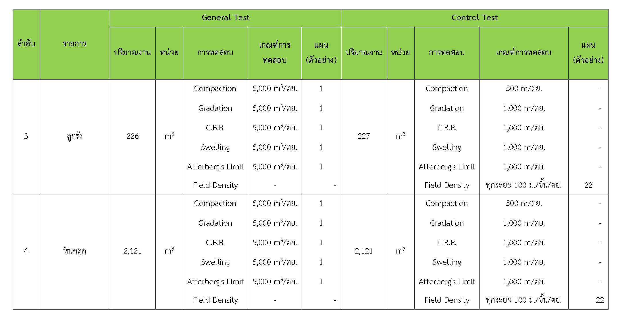 ในระหว่างวันที่ 1-30 พฤศจิกายน 2561 ผู้ว่าจ้างได้เสนอหนังสือขออนุมัติใช้วัสดุถึงที่ปรึกษา โดยที่ปรึกษาได้ตรวจสอบวัสดุดังกล่าวมีผลทดสอบดังตาราง