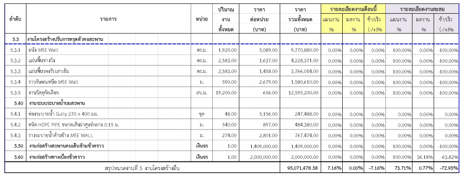 ในเดือน กุมภาพันธ์ 2562 มีความก้าวหน้าของงานก่อสร้างที่สามารถตรวจรับงานได้ ดังสรุปในตารางที่ 2.3-1