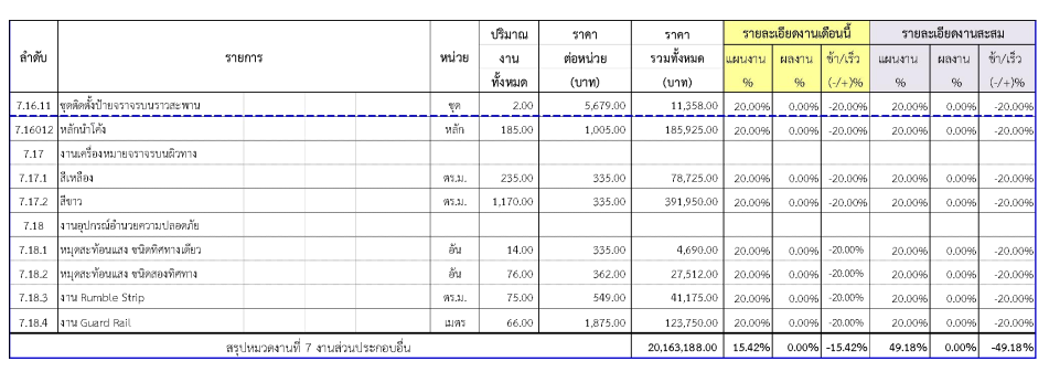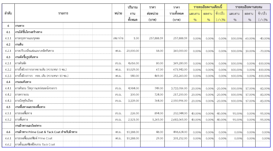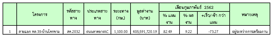 ความก้าวหน้าของเดือน กุมภาพันธ์ 2562 ของการปฏิบัติงาน ( 9.22 %) แยกเป็น ดังต่อไปนี้