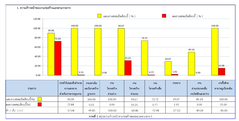 ตารางที่ 2.1-1 สรุปผลงานความก้าวหน้าของงานก่อสร้าง