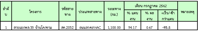 ความก้าวหน้าในช่วงเดือน กรกฏาคม 2562 ( 0.67 %) ผลงานความก้าวหน้าแสดงไว้ในตารางที่ 3.1-1 ดังนี้