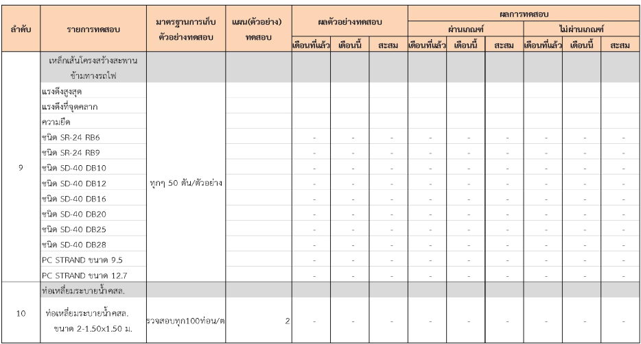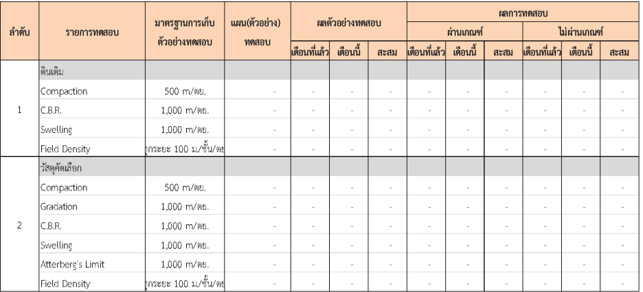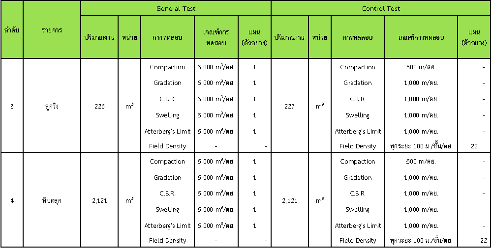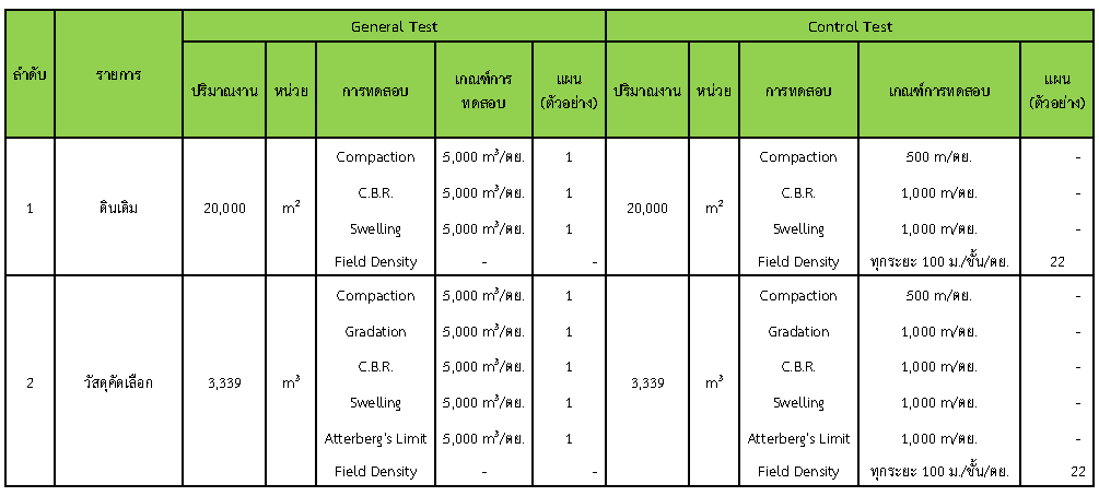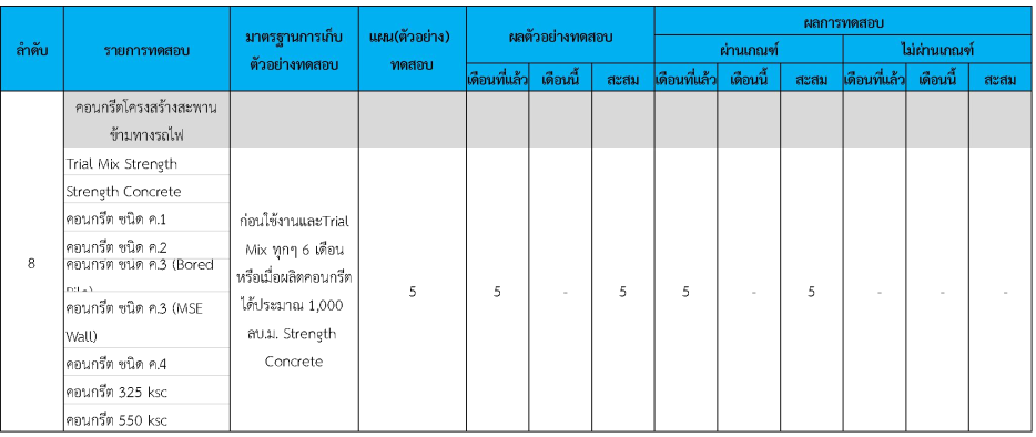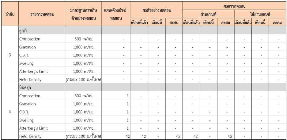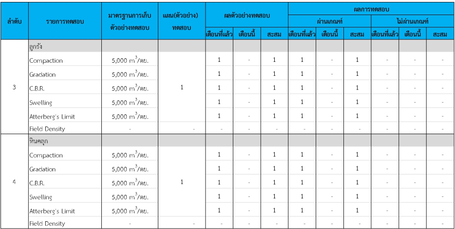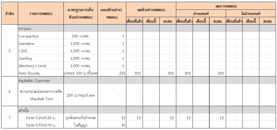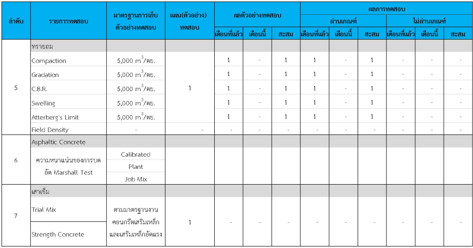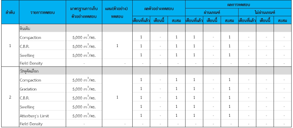 ในระหว่างวันที่ 1-31 กรกฏาคม 2562 ผู้ว่าจ้างได้เสนอหนังสือขออนุมัติใช้วัสดุถึงที่ปรึกษา โดยที่ปรึกษาได้ตรวจสอบวัสดุดังกล่าวมีผลทดสอบดังตาราง