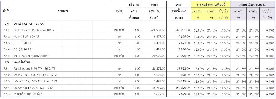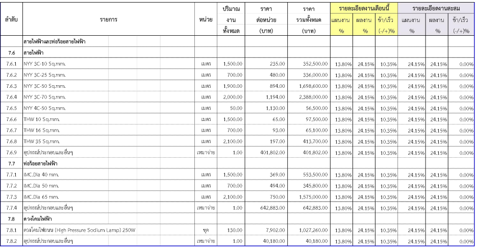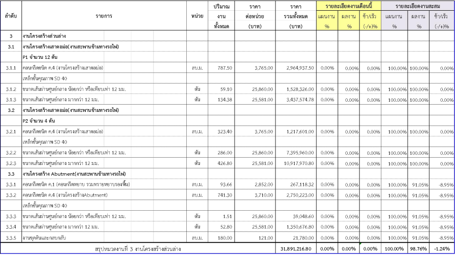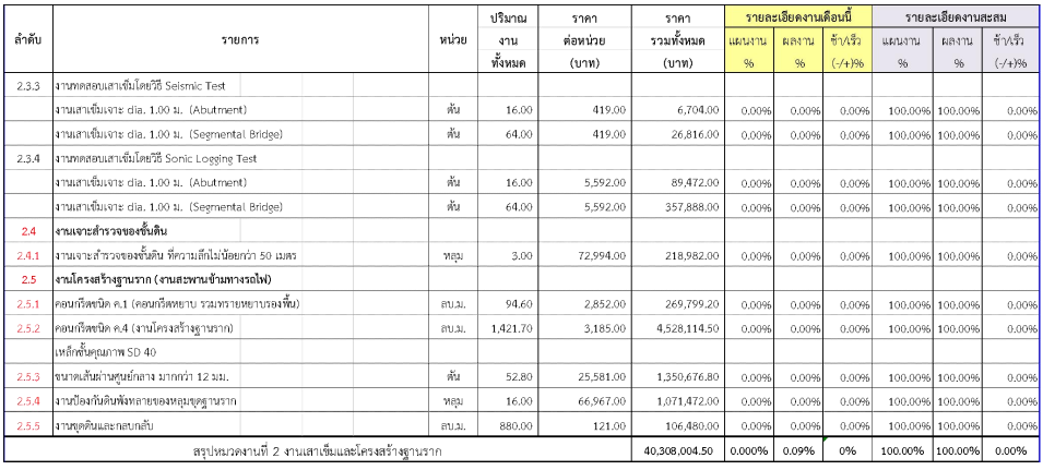 2.2ความก้าวหน้าของงานก่อสร้างแยกตามรายการ