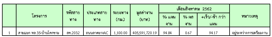 ความก้าวหน้าของเดือน สิงหาคม 2562 ของการปฏิบัติงาน ( 0.67 %) แยกเป็น ดังต่อไปนี้