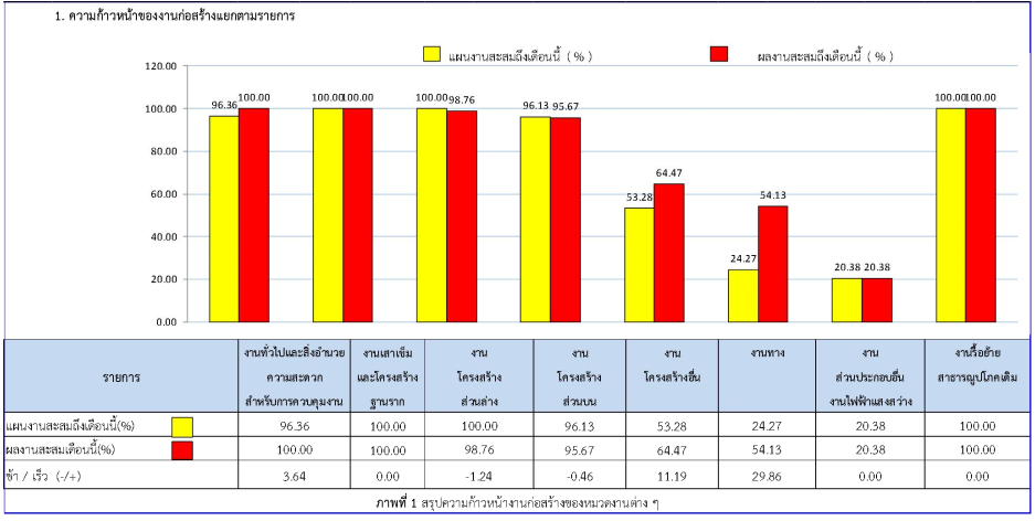 ตารางที่ 2.1-1 สรุปผลงานความก้าวหน้าของงานก่อสร้าง