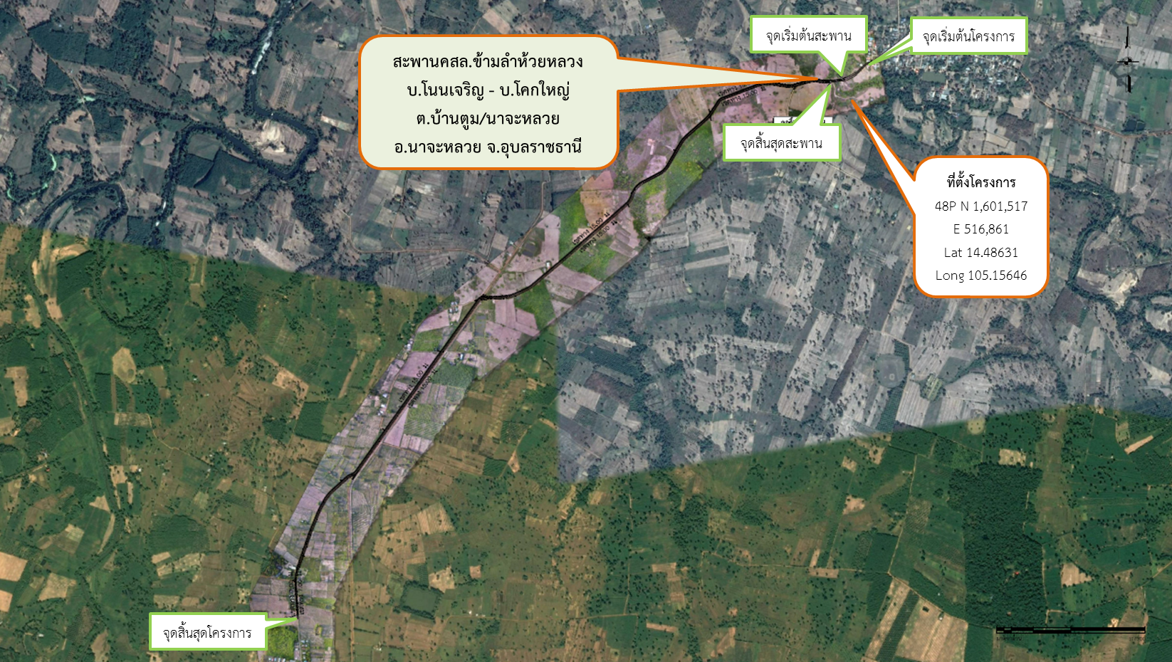 สะพานข้ามลำห้วยหลวงเป็นสะพานข้ามระหว่าง บ.โนนเจริญ - บ.โคกใหญ่ ต.บ้านตูม/นาจะหลวย อ.นาจะหลวย จ.อุบลราชธานี